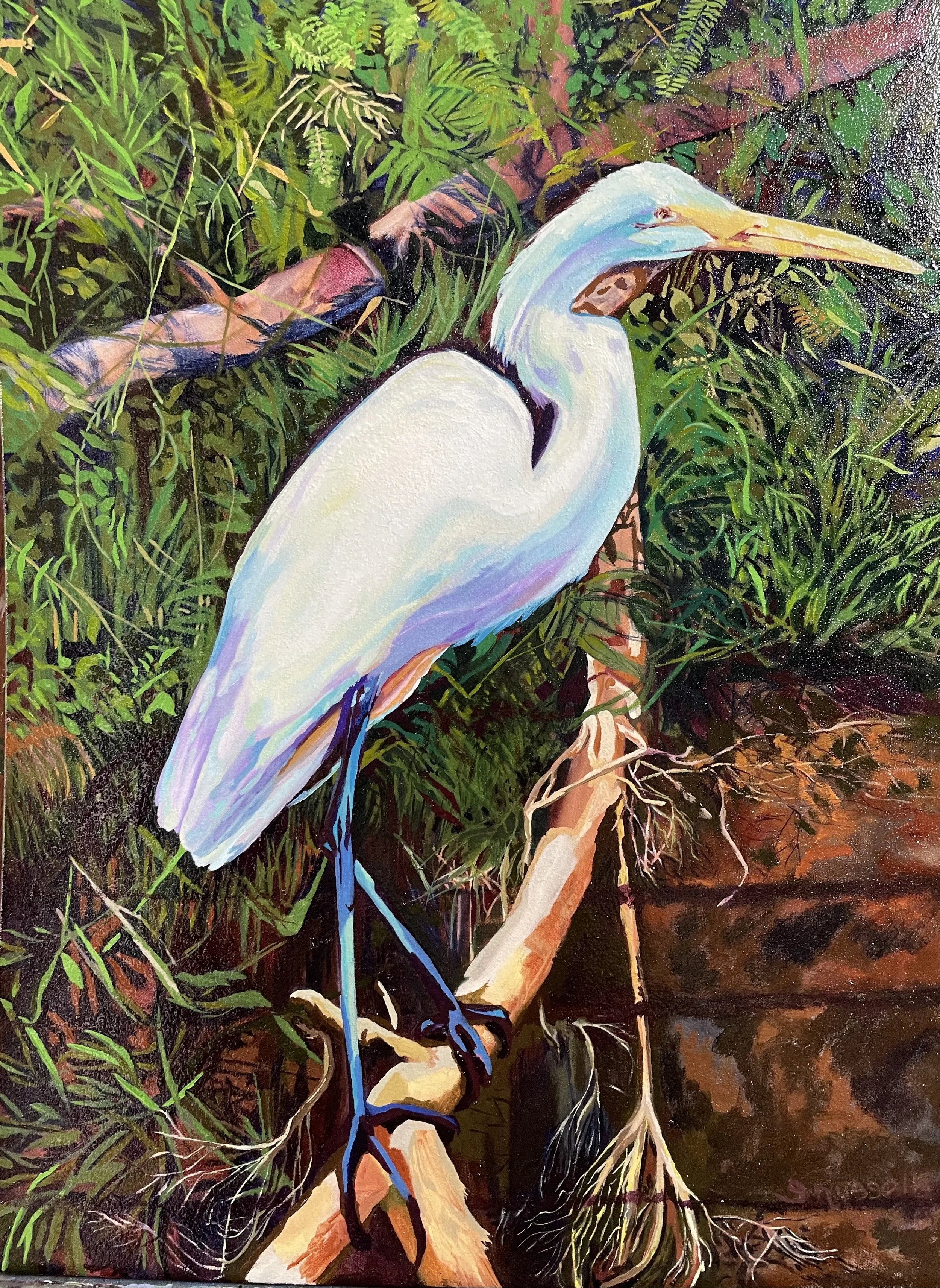 GREAT WHITE HERON ie., the flood, Oil on Canvas, 24" x 18 1/4"