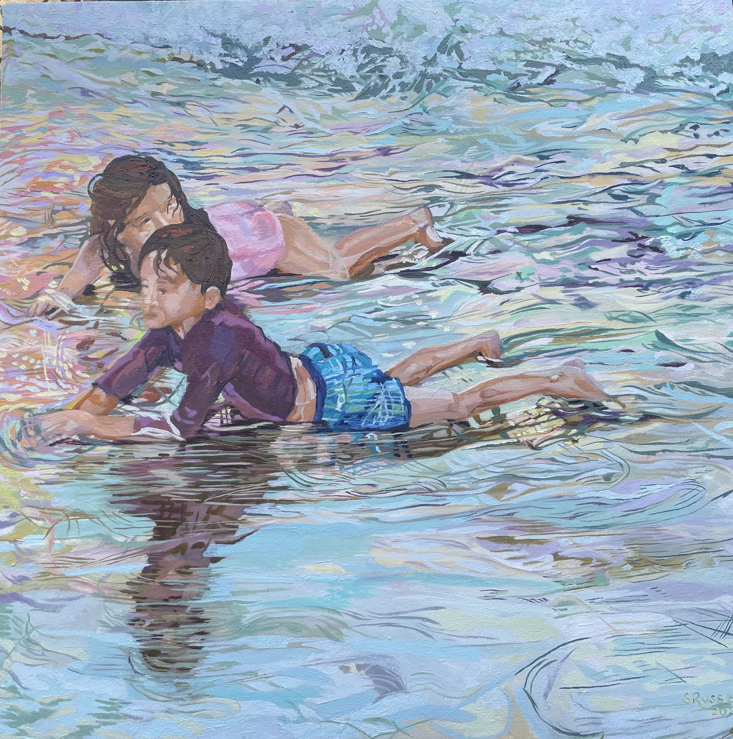 PLAYING IN A PUDDLE OF SUNSHINE, Oil On Canvas, 24 1/8" x 24"